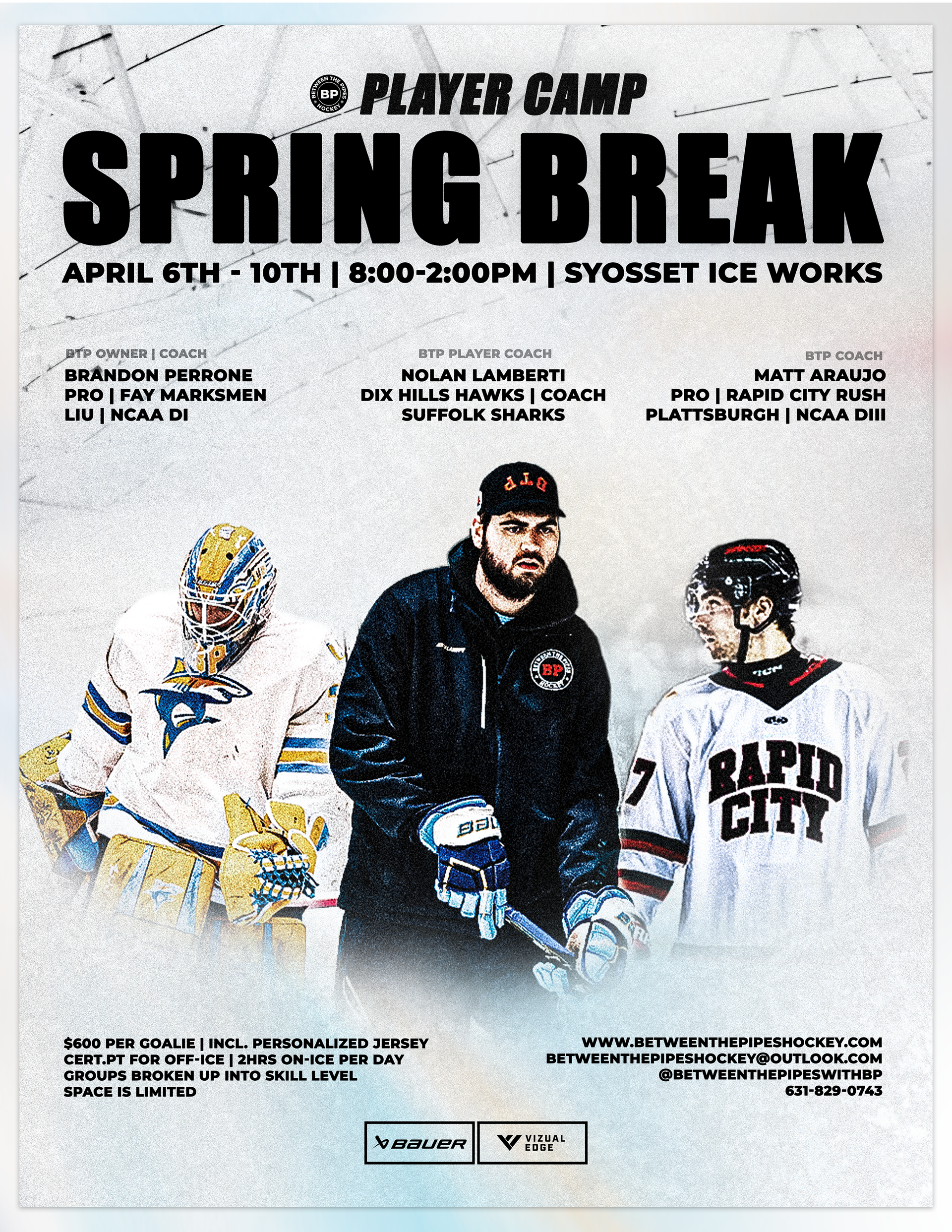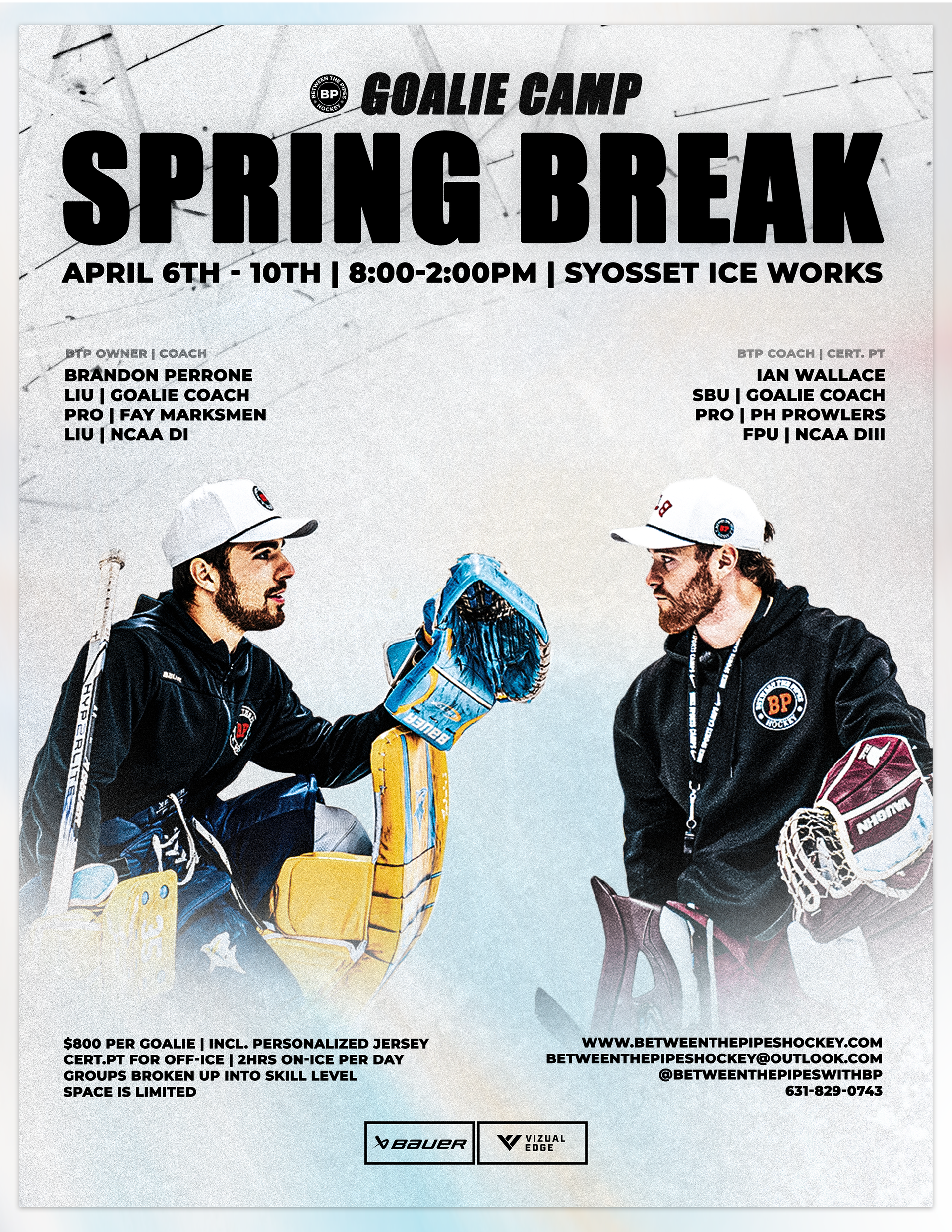 Here at Between The Pipes Hockey, we stand on having fun while being the best we can be. Our camps run in the Summer and the Winter and are a space to have fun, make connections and work on our skills! They are run by some of the most elite professional and college athletes in the Northeast being lead by our owner/founder Brandon Perrone. We make each camp experience unique and customized to each individual! Our camps often have competitions, giveaways, training on and off ice, snacks, pizza parties, and special guests. At our most recent camp, we had former 1st round draft pick, NY Islanders Goalie Rick DiPietro participate and share his story! Check out some of the pictures below from this summer. If you are interested in staying connected with us for camp updates- join our mailing/texting list and keep an eye out for camp announcements! Hope to see you there!